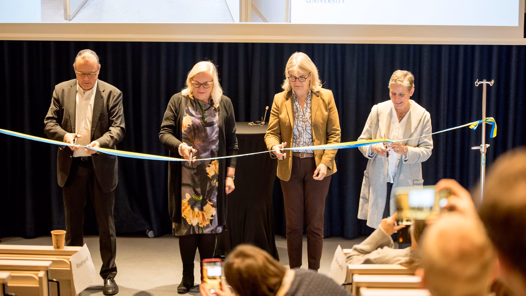 •Fyra företrädare klippte ceremoniellt ett band tillsammans, representanter från IngaBritt och Arne Lundbergs forskningsstiftelse, Crafoordska Stiftelsen, Region Skåne och Lunds universitet.